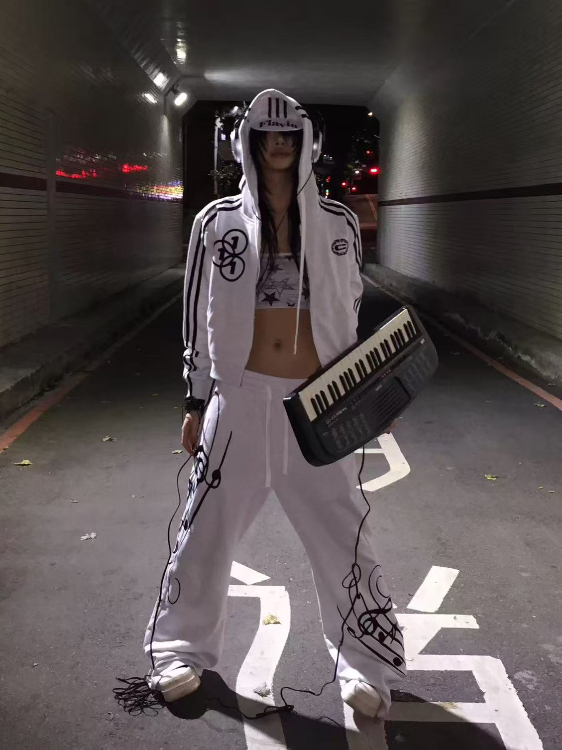 3D刺繍ミュージックプリントレザーフラットキャップ