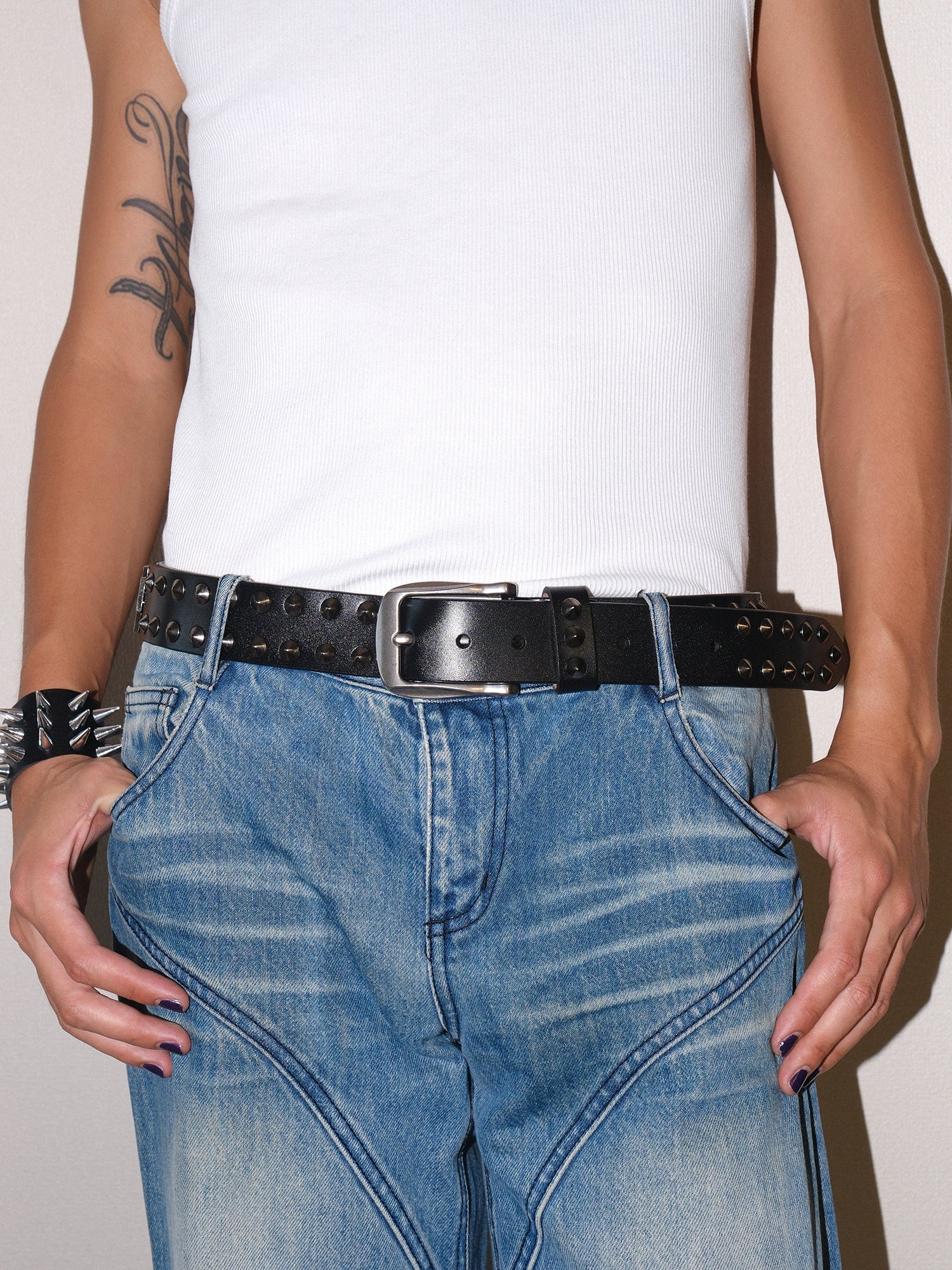 Genuine Leather Cross Rhinestone Studded Belt