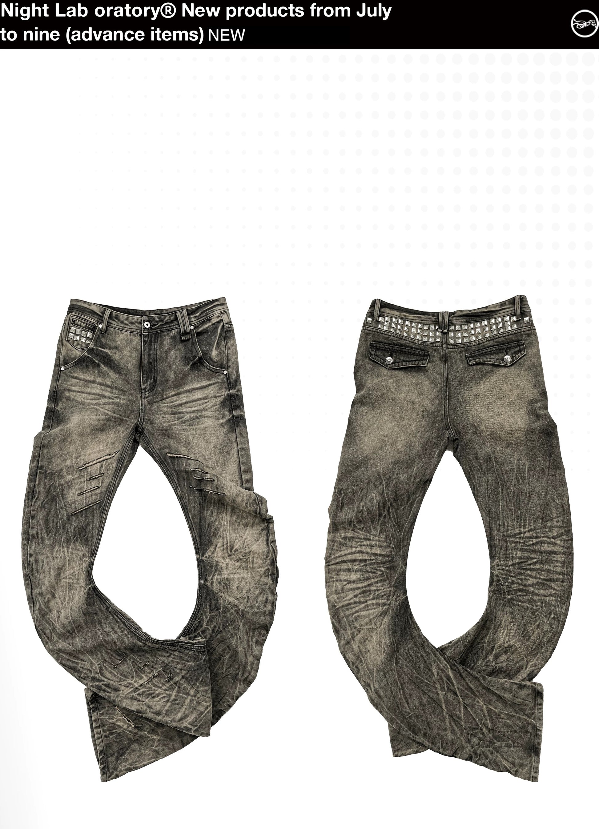 Night Lab 2026 "Banana Cut" Khaki Denim - Vintage Rock Aesthetic Slim Stacked Trousers