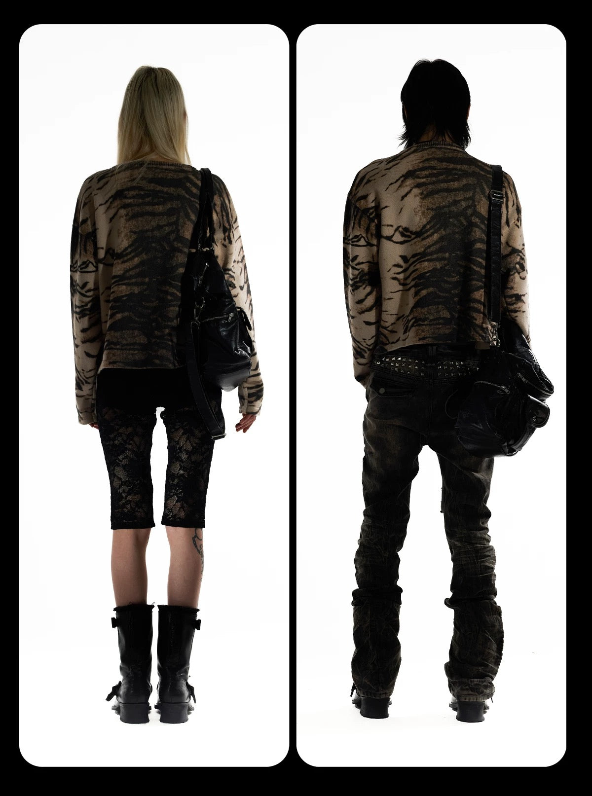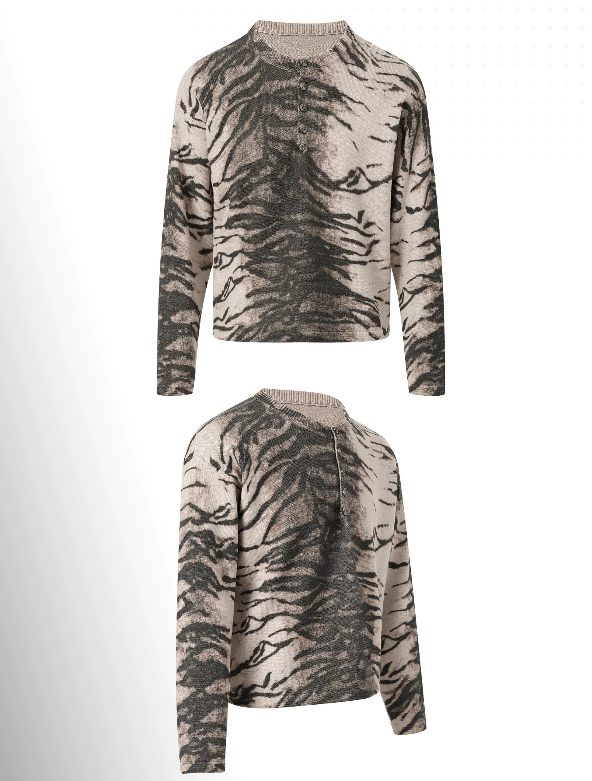 Night Lab Y2K Mixed Animal Print Henley Sweater - Retro 2000s Cropped Boxy Knitwear