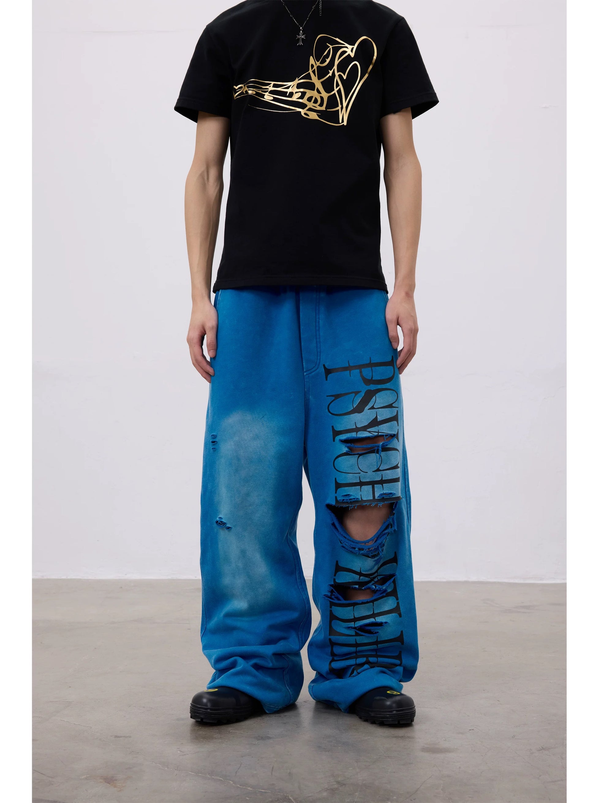 PSYCHOKILLER Washed Blue Distressed Sweatpants